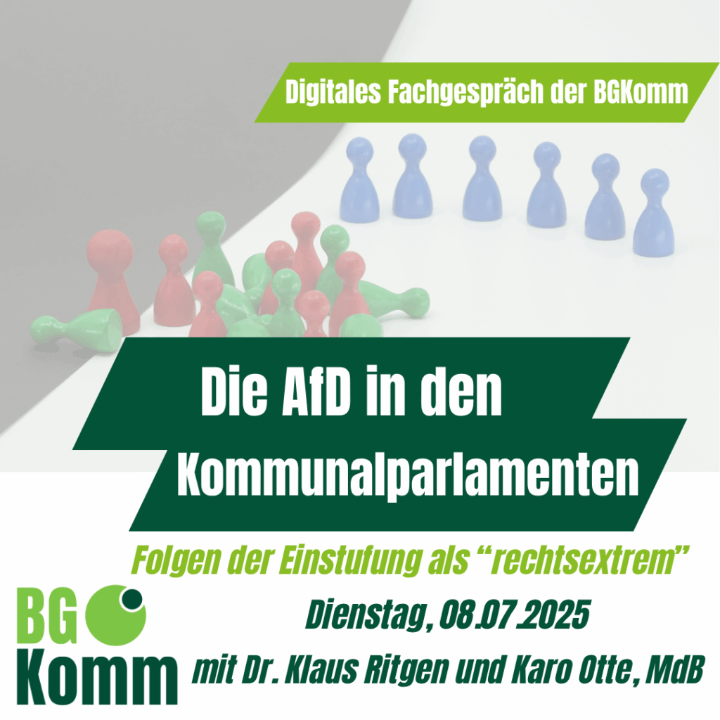 Am 08. Juli 2025 fand unser digitales Fachgespräch mit Karo Otte, MdB, und Dr. Klaus Ritgen zum Thema „Die AfD in den Kommunalparlamenten: Die Folgen ihrer Einstufung durch den Verfassungsschutz als „gesichert rechtsextrem“ statt. Mehr Infos und Aufzeichnung.
